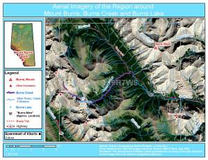 Not much is known about the naming of Burns Creek. The creek is named on the 1926 Calgary Sectional Sheet and it is most certainly named due to its association with the nearby mountain and coalmine. Mountains often lend their names to associated geographical features, such as creeks and lakes. Typically, these creeks run directly off the mountain. For example, Storm Creek runs off Storm Mountain and Warspite Creek runs off Mount Warspite. However, in the case of Burns Creek, the creek is not directly associated with Mount Burns, but is located on the opposite side of the sheep River Valley.