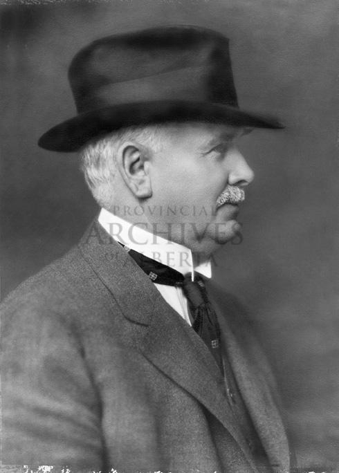 Alfred Ernest Cross was influential in many aspects of Alberta’s economy. Cross was born in 1861 at Montreal. He trained as a veterinarian and came to the North West Territories in 1884 where he was employed as a veterinarian at the Cochrane Ranche (now a Provincial Historic Resource). He left the Cochrane about a year later and started his own operation, the A7 Ranche, on Mosquito Creek, just west of Nanton. For health reasons, Cross returned to Montreal for a time. During this period, he maintained control of the A7, but he also apprenticed as a brewer. He returned to Calgary in 1891 and founded the Calgary Brewing and Malting Company and established a chain of brewery-owned hotels across Western Canada. He was active professionally and socially in the Calgary region, being a founding member of the Ranchmen’s Club, the Calgary Board of Trade and the Western Stock Growers Association. He was elected to the Legislative Assembly of the North West Territories in 1898, representing East Calgary. Cross contributed to numerous charitable causes and was a noted philanthropist in southern Alberta. He was also instrumental in establishing Alberta’s oil and gas industry; in 1912, he was a founding partner of Calgary Petroleum Products, which would discover gas at Turner Valley a few years later. Despite all of these accomplishments, Cross’ lasting legacy is in the ranching sector. By 1919, the A7 Ranche had grown to control over 25,000 acres and was one of the largest ranches, possibly even the largest, in Alberta. A. E. Cross died in 1932. The A. E. Cross House in Calgary is a designated Provincial Historic Resource. As of 2012, the A7 Ranch continues to be operated by the Cross family.