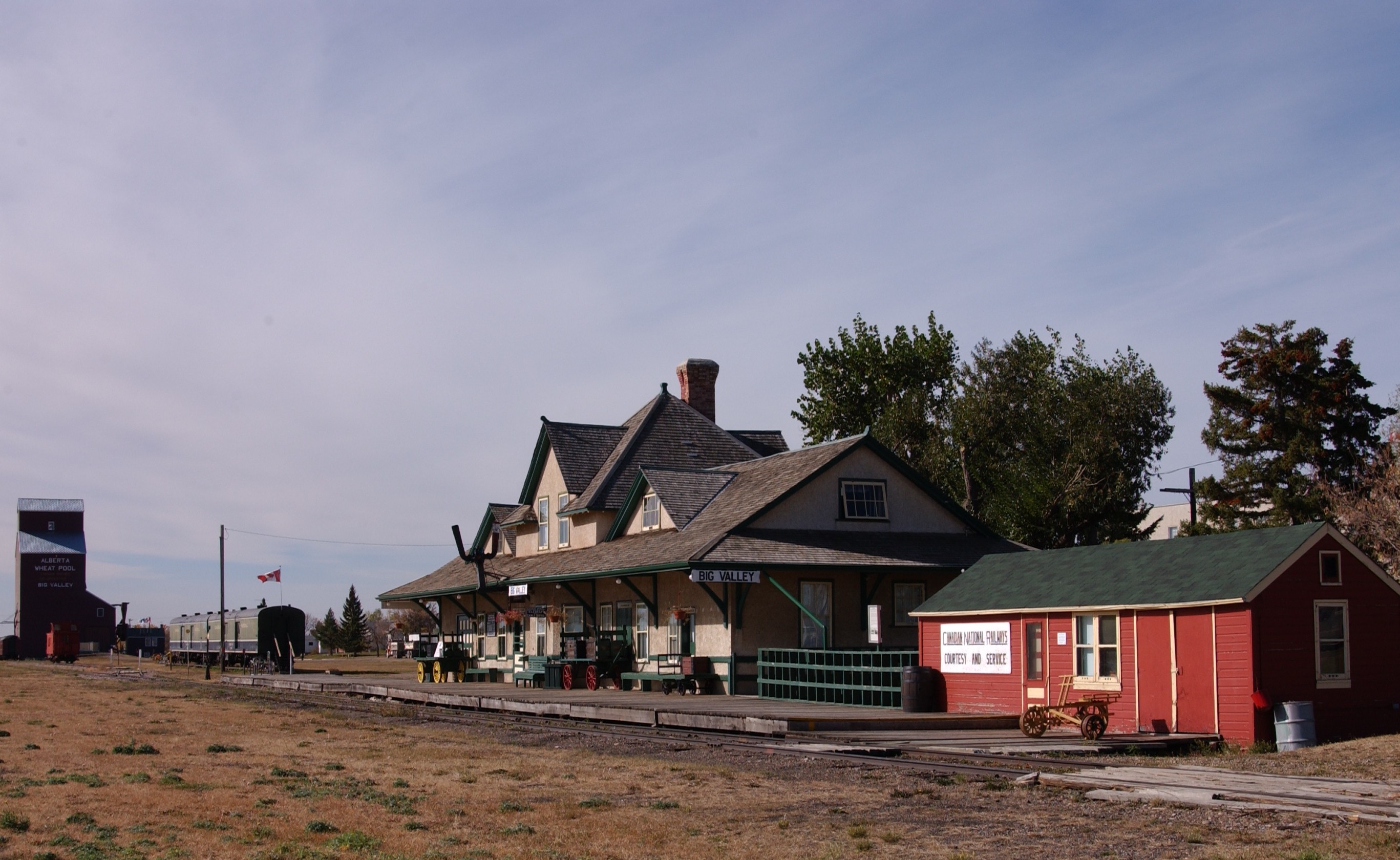 At one time, more than 800 communities in Alberta had a train station. This is no longer the case. Fewer than 10% of Alberta’s train stations remain today, and even fewer continue to serve their original purpose. The Canadian Northern Railway Station at Big Valley – designated a Provincial Historic Resource in 2005 – is one of those few. Train excursions run regularly from Stettler to Big Valley, often with the mighty 6060 Steam Locomotive (also a Provincial Historic Resource) in the lead.