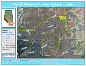 Now, I know that Corb Lund is from southern Alberta and even though I am the names guy, I am not all that familiar with the southern reaches of the province. After mulling over the song for awhile, I start to wonder if there really is a “Lee’s Creek.” So, I fire up the old Alberta Geographical Names Database and sure enough there is a “Lee’s Creek,” or more properly there is a Lee Creek (more on that in a moment) in southern Alberta. It is a substantial creek with an interesting history.