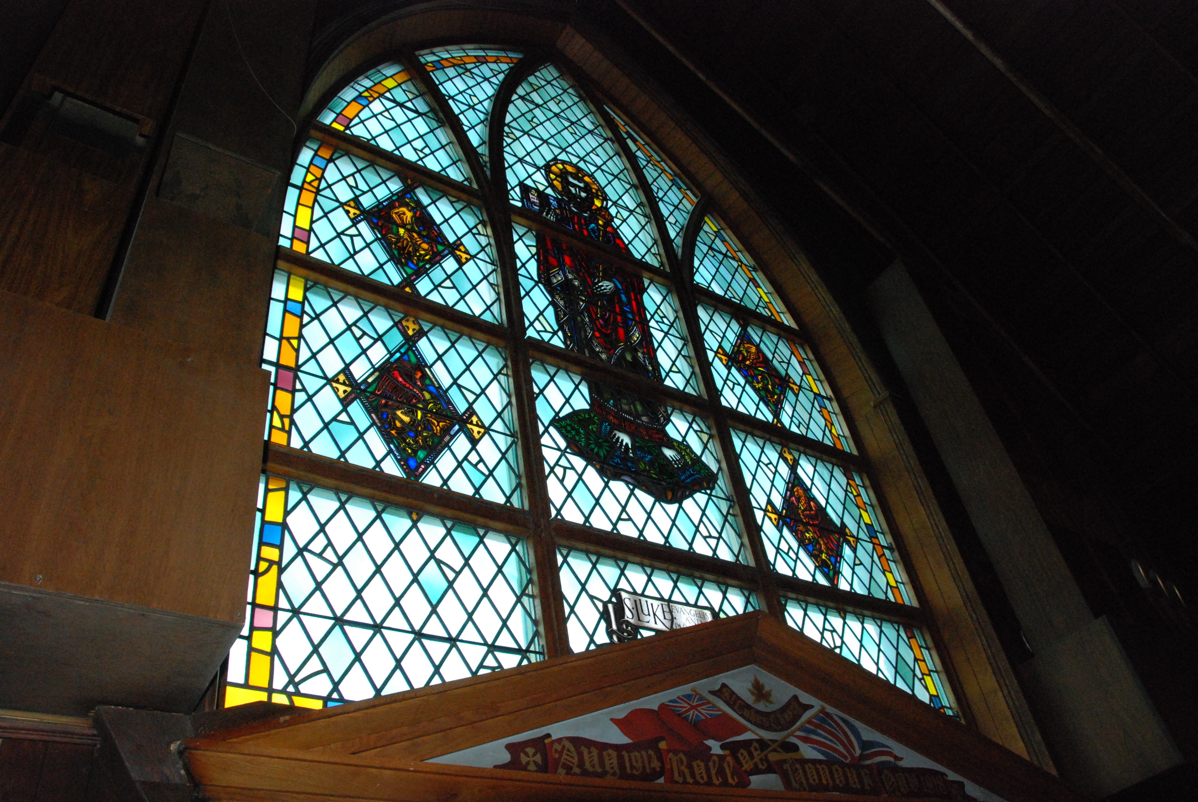 (Photo DSC_4871.jpg) Interior view of the west-facing stained glass window. Historic Resources Management Branch, 2009