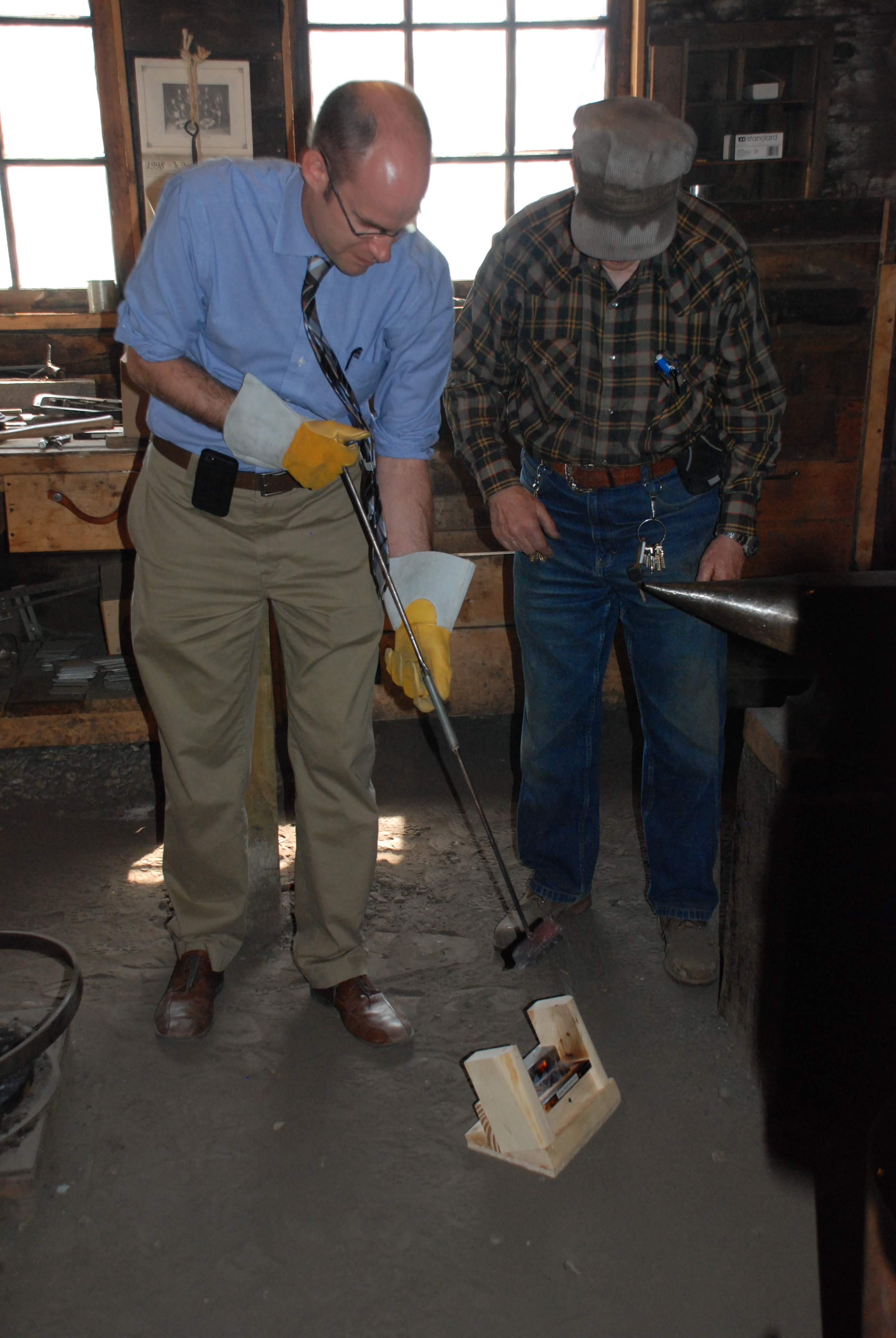 Matthew Wangler, the foundation’s Executive Director, tired his hand at blacksmithing.
