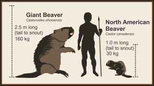 Image referred to as Figure 1. An image comparing the size of the Giant Beaver (Castoroides ohoioensis), humans and the North American Beaver (Castor canadensis). The now extinct Giant Beaver was 2.5 metres long (tail to snout); the North American Beaver is roughly 1 metre long (tail to snout).