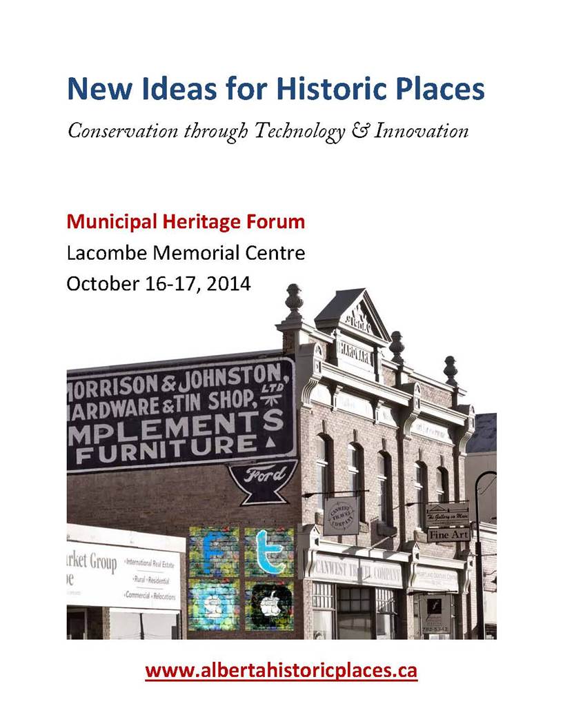 As previously announced, the 2014 Municipal Heritage Forum will be held on October 16th and 17th at the Lacombe Memorial Centre with sessions to be held in and around their award winning Main Street. The theme of this year’s forum is “New Ideas for Historic Places: Conservation through Technology and Innovation”. We are planning some exciting sessions to get you thinking about social media, mapping and documentation as well as workshops on using technology for building conservation. We hope to see you there! Registration will open and keynote speakers will be announced in June.