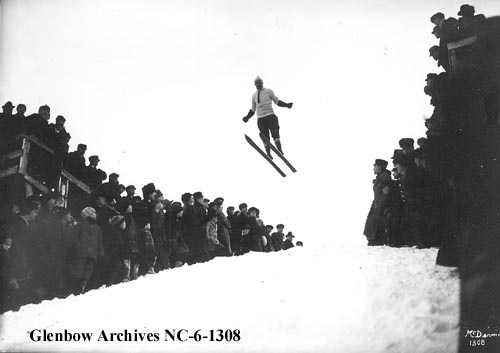 Although ski running, soon known as cross country skiing (or Nordic skiing) was becoming popular, it was ski jumping that captured the public’s imagination. In 1913 over 5,000 spectators watched John Hogan set a new Canadian record with a jump of 109 feet at Connors Hill. It was a major event attended by the Lieutenant Governor Bulyea, Mayor McNamara, and the Norwegian consul.