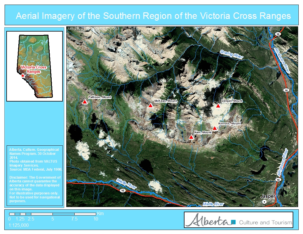 Correspondence continued into the following year, until a decision was made to accept Alberta’s request to name the five mountains in Jasper National Park. Additionally, an agreement was reached that the entire series of mountains would be known as the Victoria Cross Ranges. The names Mount Kerr, Mount Kinross, Mount McKean, Mount Pattison and Mount Zengel were approved in 1951 and the name of the Victoria Cross Ranges was officially recognized in May 1952. Afterwards, it was agreed by both the Parks Branch and the Province of Alberta that the entire range would stand as an eternal commemorative monument to all Canadian recipients of the Victoria Cross and that no other mountains or features within the ranges would be named after individual recipients of the military honour. This is an agreement that continues to be honoured by Alberta and Parks Canada today.