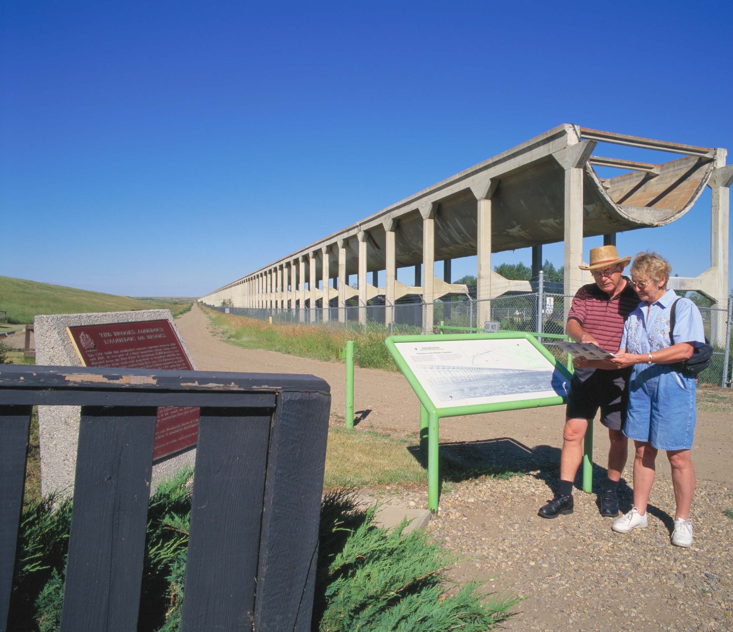 - The Brooks Aqueduct was built by the Canadian Pacific Railway in the early 1900s and was the largest concrete structure of its kind in the world at the time (spanning a 3.2 km wide valley). The Aqueduct was an important part of an expansive irrigation network in the area and is an impressive site to see!
