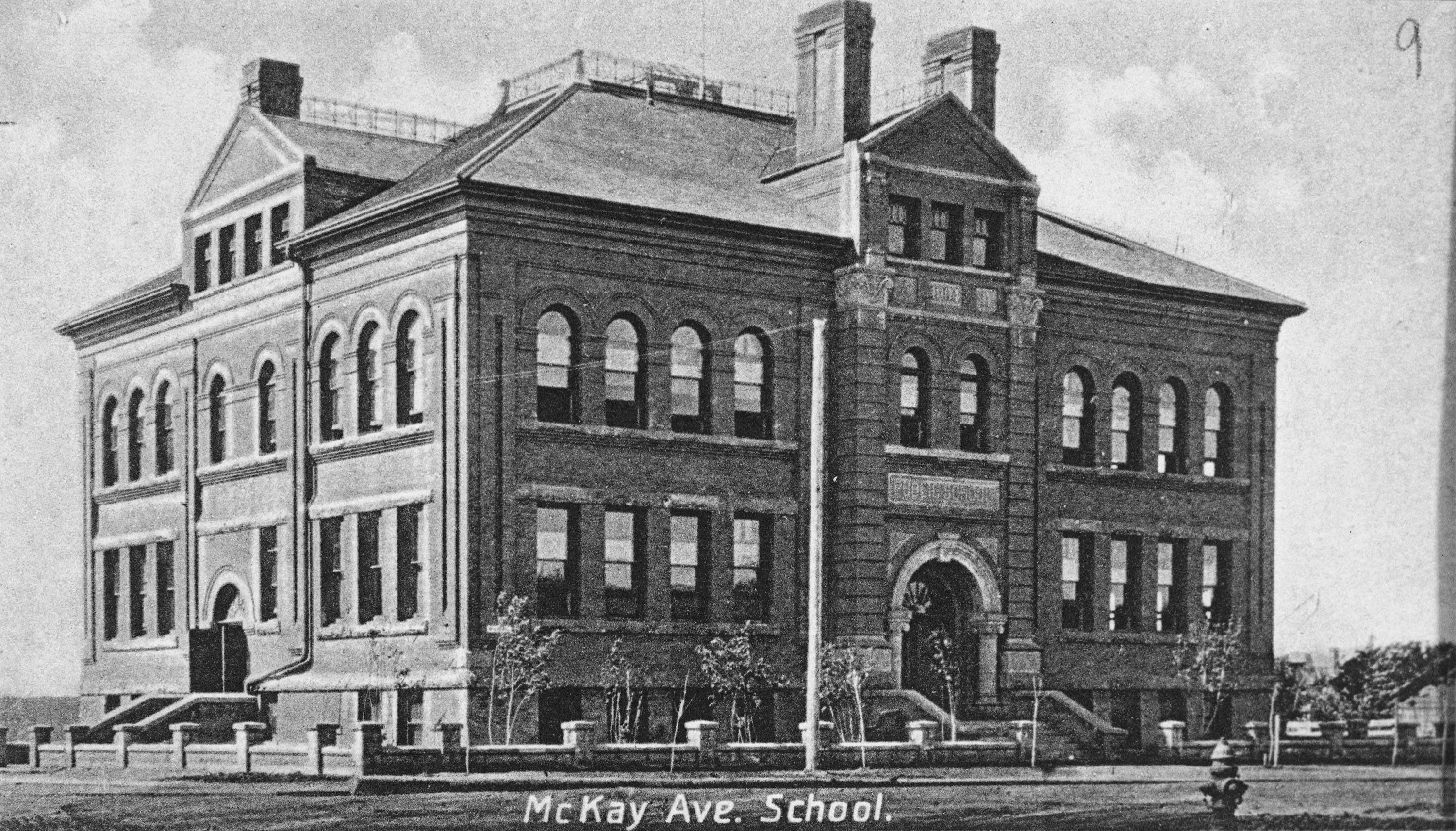 1. The McKay Avenue School: Built between 1904 and 1905, the McKay Avenue School is an early twentieth-century, three-story building situated in the heart of Edmonton’s Downtown district. The building has a red-brick façade with sandstone trim, round arches over the windows, and imposing columns flanking the main entrance. The building hosted the inaugural session of the Alberta Legislative Assembly. It’s also connected to early educational institutions in Edmonton and is an example of stately Richardson Romanesque architectural style.