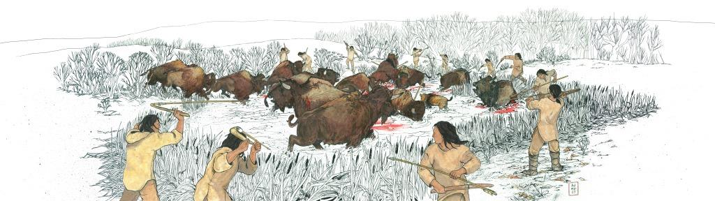 Some archaeological sites, like Everblue Springs in Calgary, reveal that atlatl hunting was a group activity. The site was excavated by Lifeways of Canada in advance of a subdivision development and yielded over 80, 000 bison bones that were preserved thanks to water-logged conditions and clay-rich soils.
