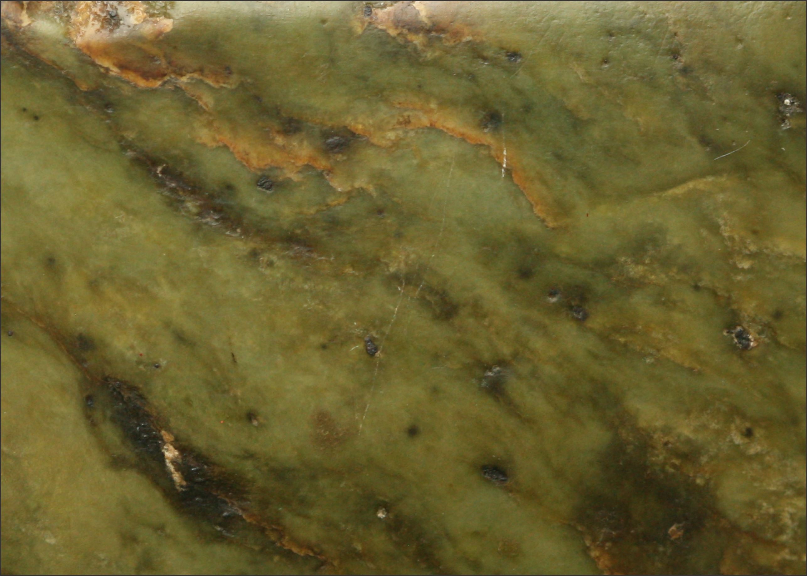 Nephrite is one of the toughest natural materials on earth and for this reason, ancient people used it to make tools called celts. Tightly interlocking bundles of amphibole crystals (actinolite/tremolite) make nephrite incredibly resistant to fracture so the celts retain their sharp edges despite hours of wood-working with them.