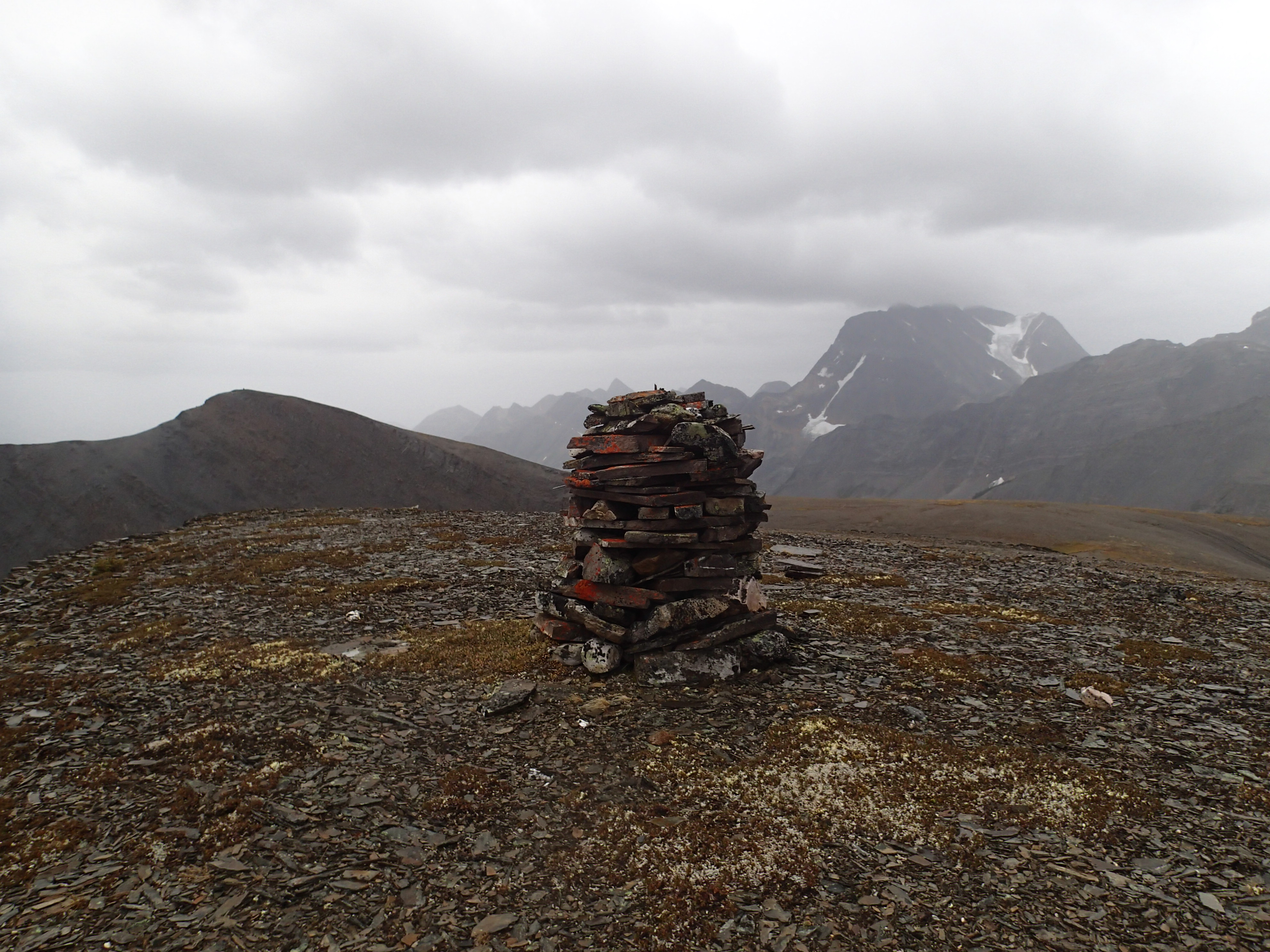 Historic cairns were observed in the alpine regions, similar to ones we observed last year in Jasper and this year in Willmore Wilderness Park. One cairn was located on Waddington Peak and had historic refuse around it such as wood structures, old battery parts, and historic cans and other refuse. The other cairn was located west of Miette Pass on the Alberta/BC boundary and consisted of rocks built up around a wooden post. Stone tools and flakes were also discovered by the team on Miette Lake, which represents an exciting extension of pre-contact activities into a remote region of Jasper National Park.