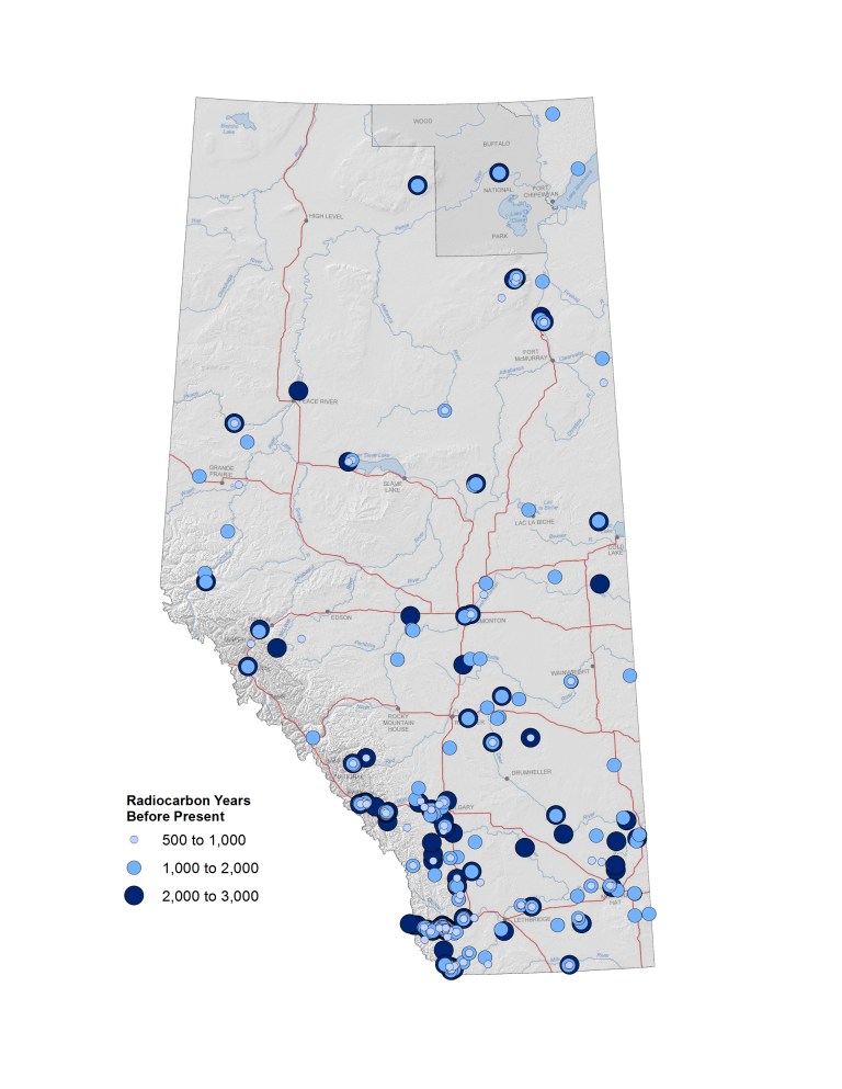 Alberta archaeological sites dating between 500-3,000 radiocarbon years before present.