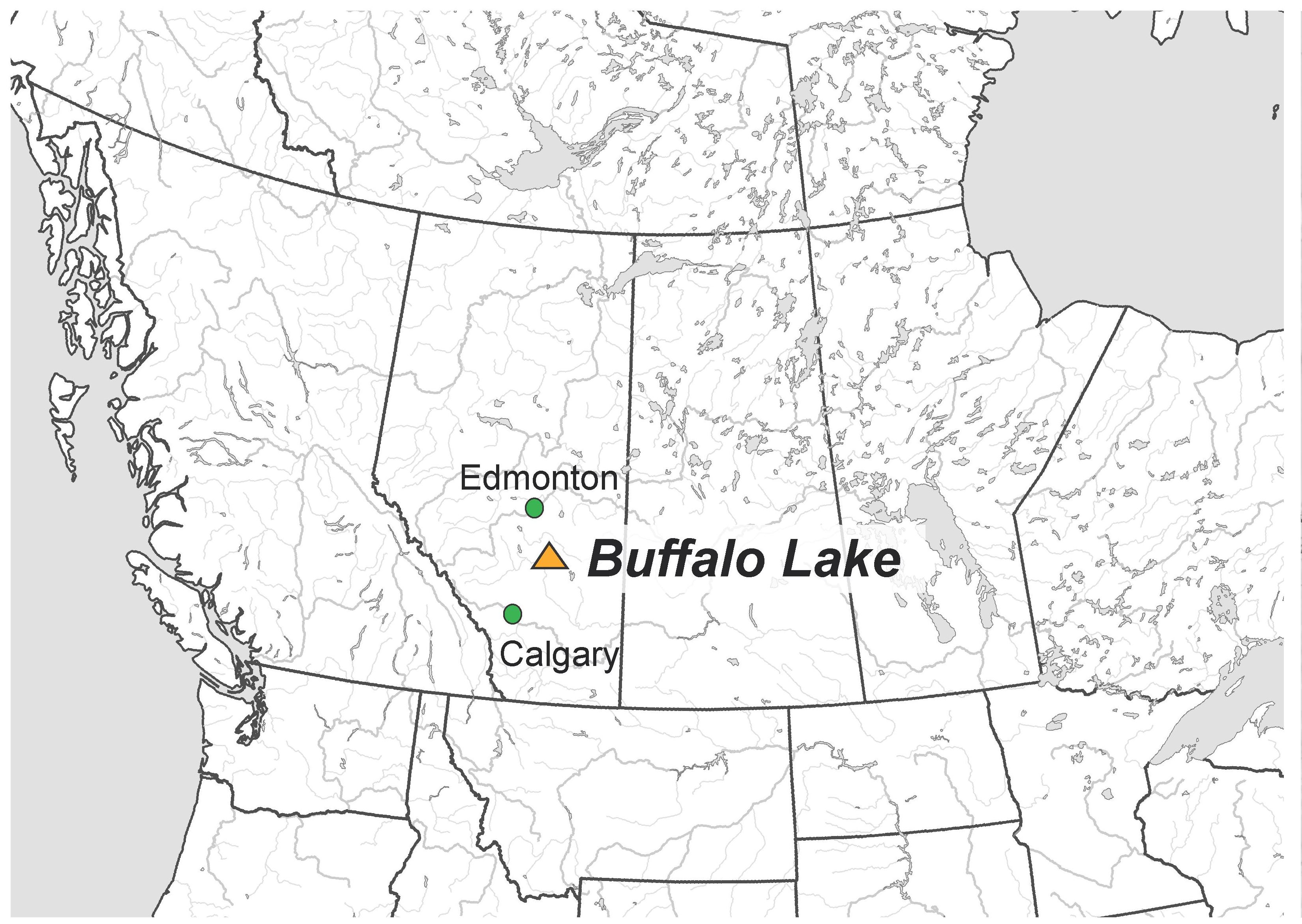 Location of the historic Métis Buffalo Lake settlement in Alberta.