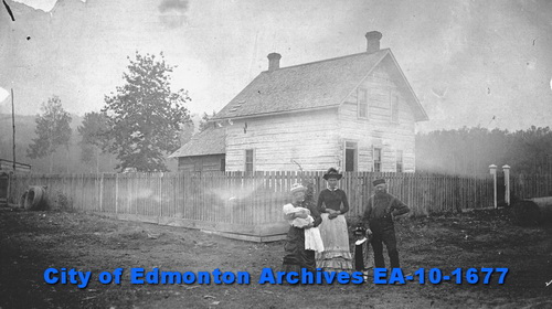 In 1876, Walter chose not to renew his contract with the HBC. Settling on the south side of the river, he selected a plot of land opposite Fort Edmonton, becoming one of the first residents of modern-day Strathcona. Granted official title in the Land Survey of 1882, Walter’s Lot 9 encompassed 155 acres that extended east and west from modern-day 107th Street to 109th Street as far south as University Avenue. In the early years, he built a two-story log house and established himself as a boat builder, continuing to build York boats for the HBC as well as other vessels like rowboats, scows, dredges and steamboats.