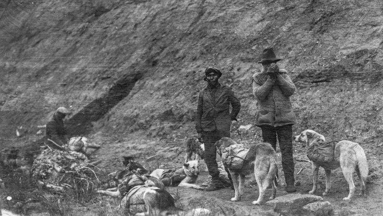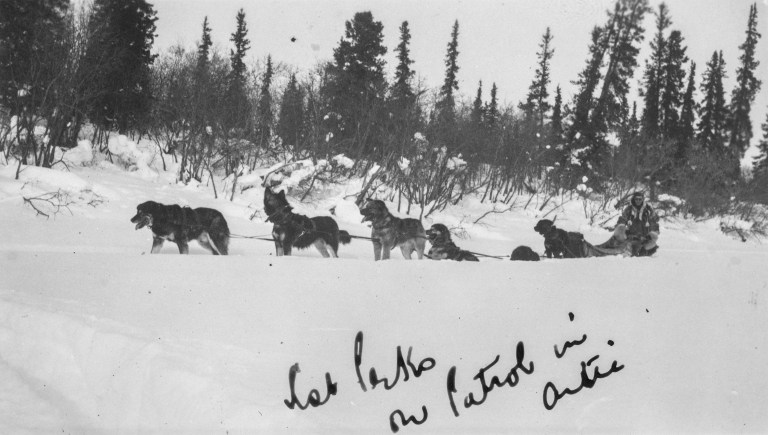 Further north in the province, dogs were routinely used to haul sleds and humans across the frozen winter landscape. While the use of dogsled teams is an ancient and well-known Inuit practice, in the boreal forest and areas south of it, it is thought to have been adopted in historic times by Sakawithiniwak (Woodland Cree) and Nehiywak (Plains Cree) groups after trapping became an important economic activity (though they likely had used a winter-adapted form of the travois for single dogs). Panniers, packs that hung on either side of a dog’s back, were used by Denesoline (Chipewyan) people travelling through muskeg, where use of a travois in snowless months would have been impossible2. Settlers, too, are documented to have used dog labour for specific tasks, particularly in winter, or in locations that were difficult to access with horses (and later, motorized vehicles).