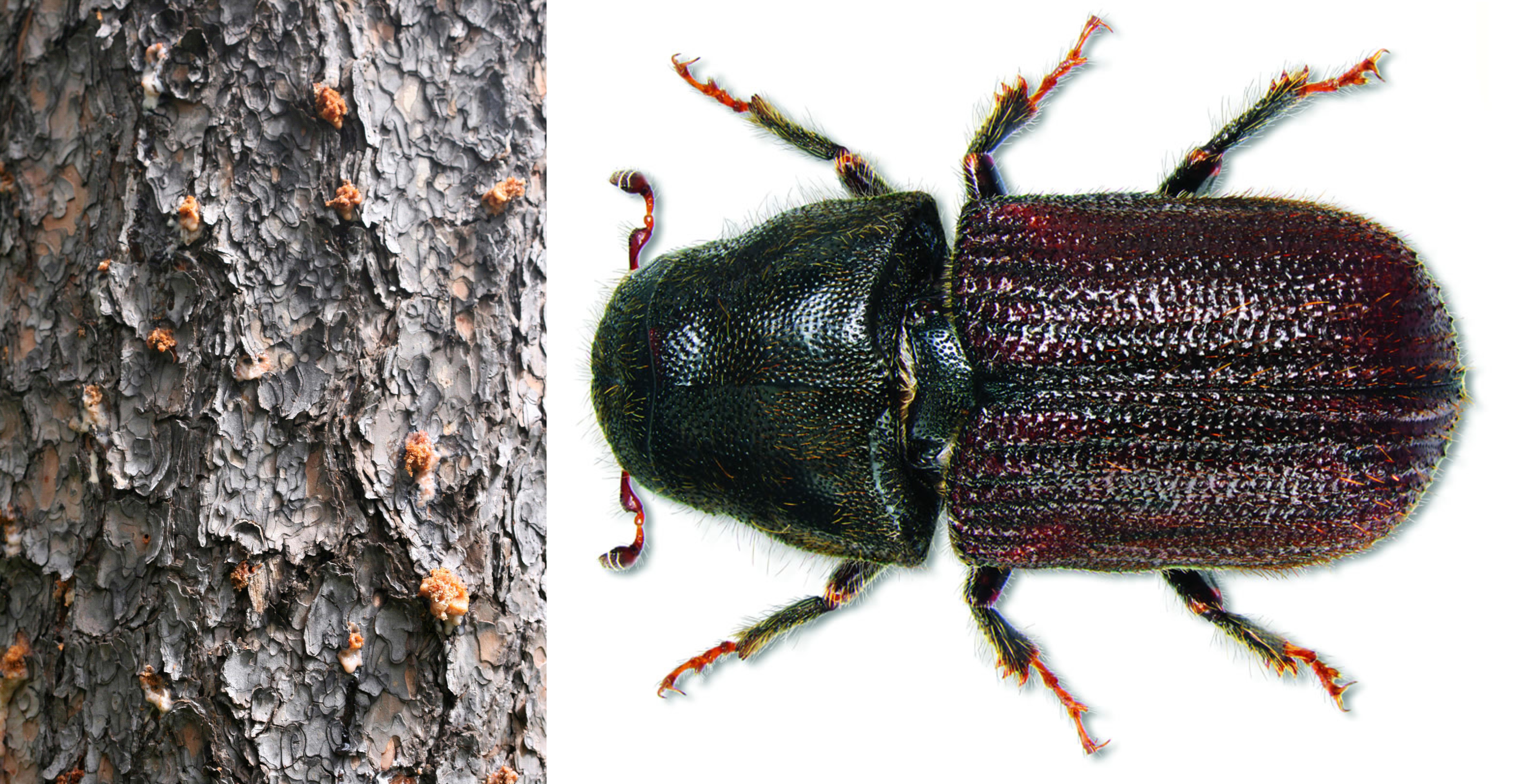 is courtesy of Whitney Cranshaw, Colorado State University and Bugwood.org. The image at right is reproduced with permission from Natural Resources Canada, Canadian Forest Service, 2019.
