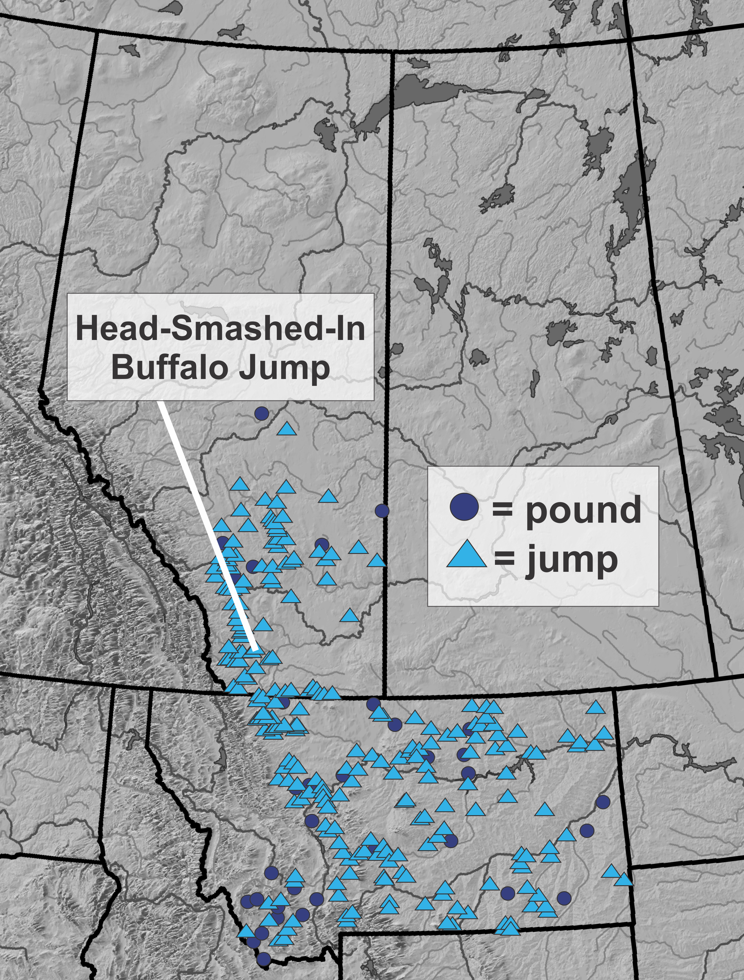 Evidence of large-scale buffalo hunting is evident across the northern plains. Head-Smashed-In is one of many sites that people used for communal hunting. Courtesy of Todd Kristensen.