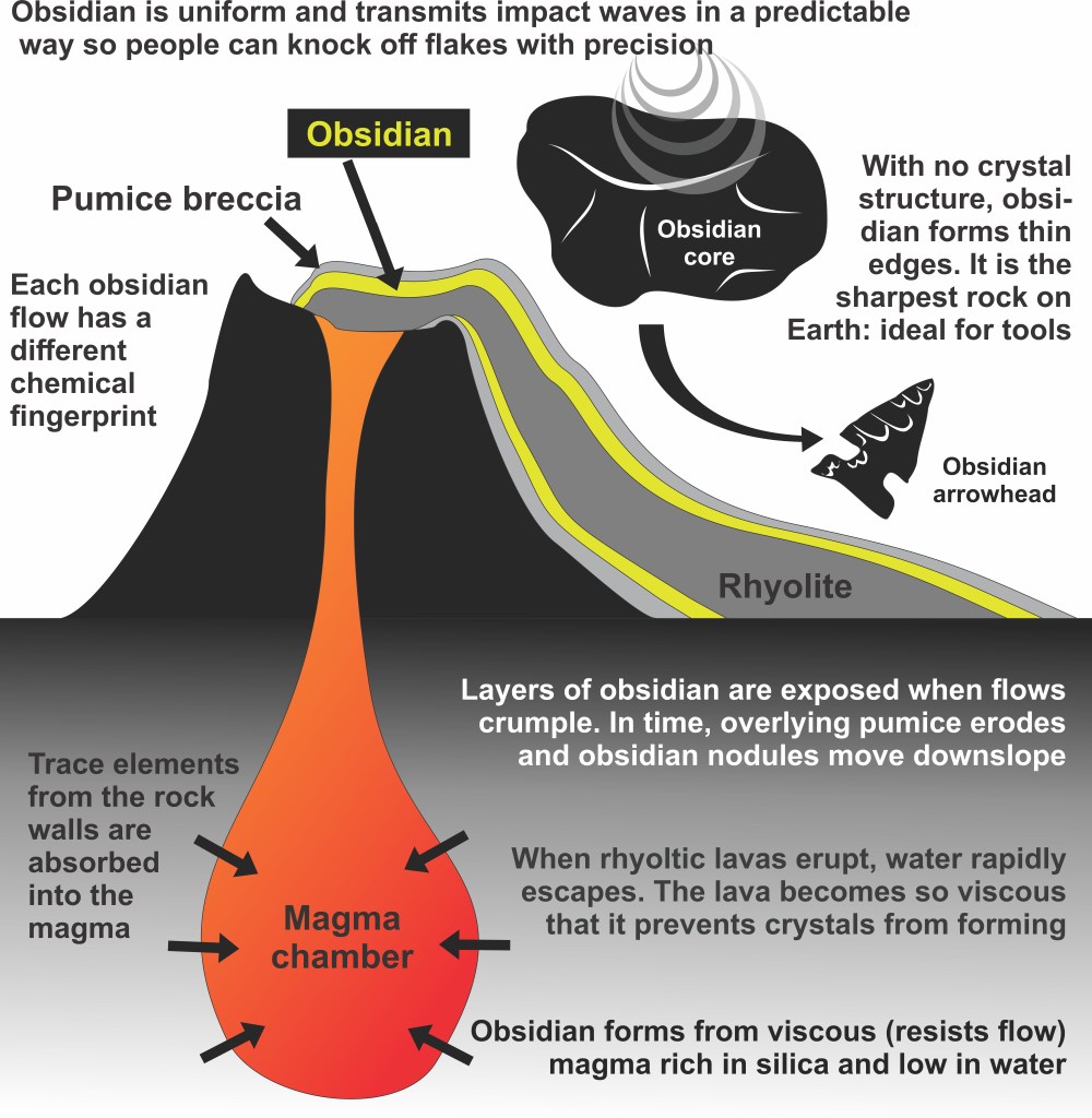 The end result of this process is a rock highly valued for making stone tools, and of high interpretive value to archaeologists who can connect every obsidian artifact at a site back to its volcanic origin.