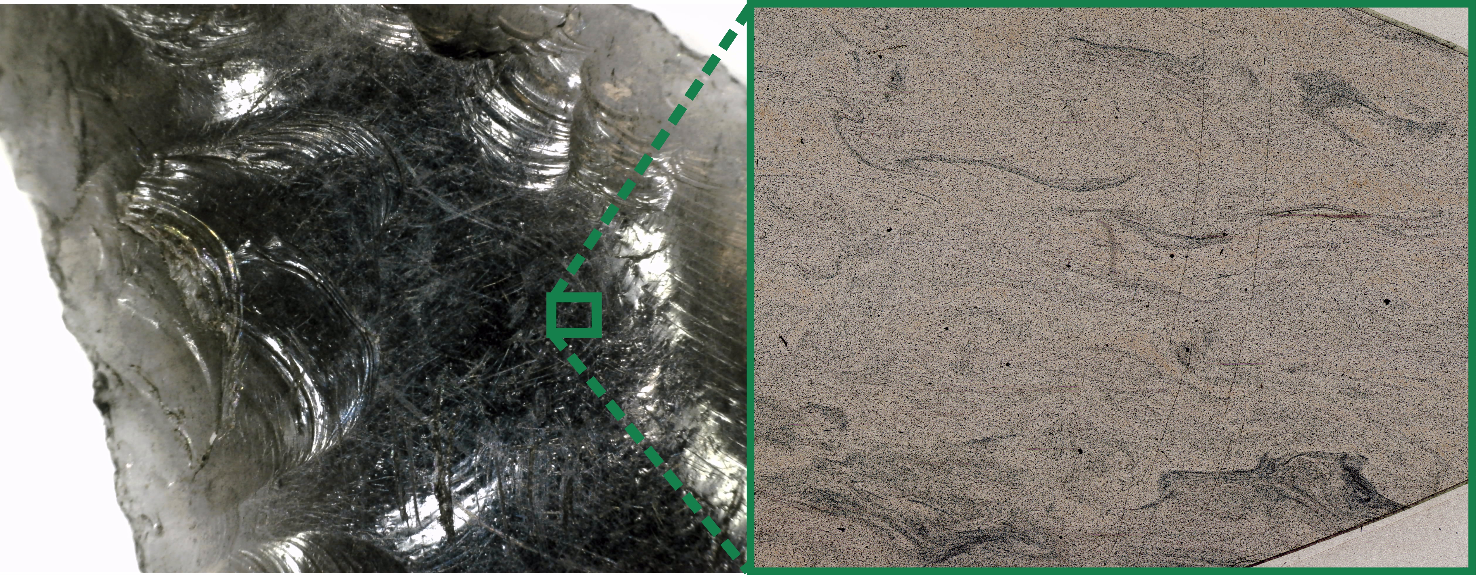 Obsidian is a volcanic stone born of magma that cools so quickly upon exposure to air that it lacks any crystal structure. This ‘amorphous’ rock is perfect for making stone tools. The edges are sharp and the material has an attractive shine or lustre; it has style and function. And importantly, when obsidian is a liquid bubbling to the surface, it absorbs microscopic elements from its volcanic chamber. Like scars from an igneous fight, these elements make each source of obsidian unique and recognizable to archaeologists.