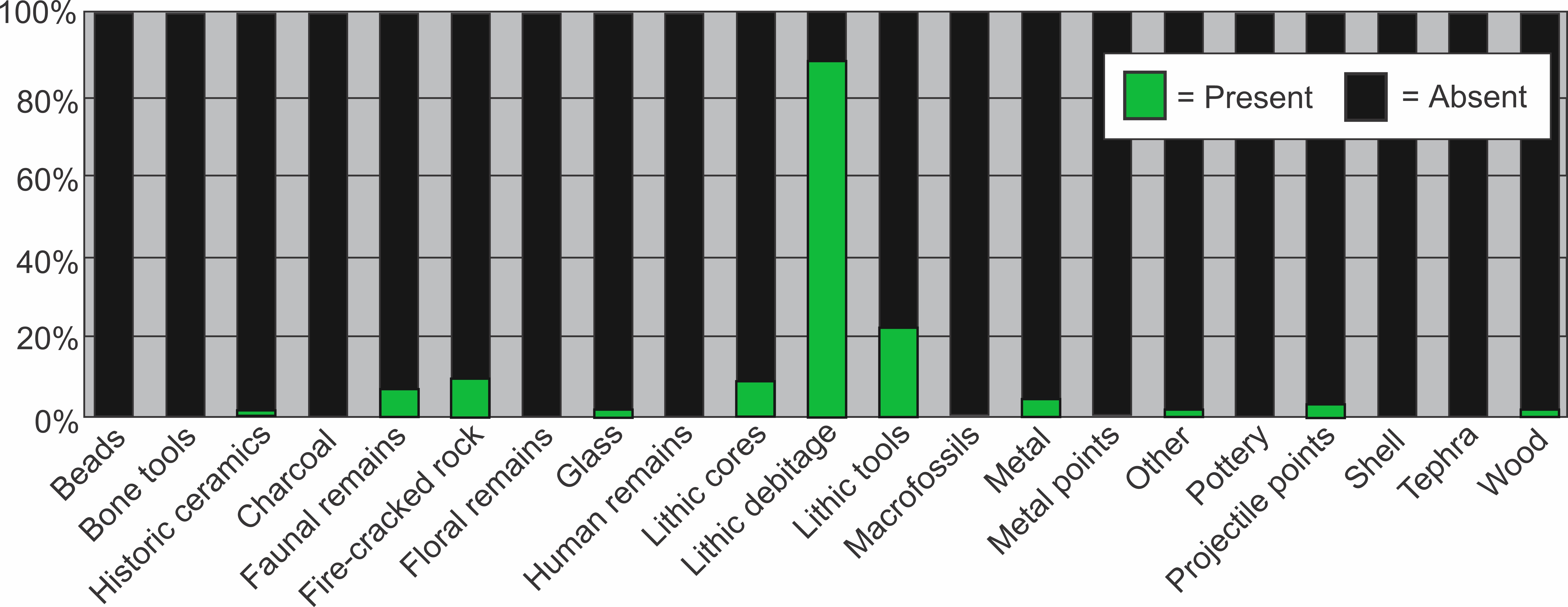 Most archaeological sites found during forestry programs are called lithic scatters: places where pre-contact people knapped stone tools. They may have performed a variety of other tasks and left different kinds of artifacts but, because of Alberta’s acidic forest soils, stone is usually the only material that preserves. About 90 per cent of the sites found during forestry permits have stone flakes or the byproducts of making stone tools. Forestry operators prefer to avoid sites, so most archaeological attention focuses on finding site boundaries, as opposed to recovering artifacts within sites. As a result, less information is recovered compared to other industries that often choose to excavate archeological sites rather than avoid them. Over 30,000 artifacts have been recovered under forestry permits and it’s estimated that over 1 million have been protected within site boundaries that were avoided during harvest and road construction.