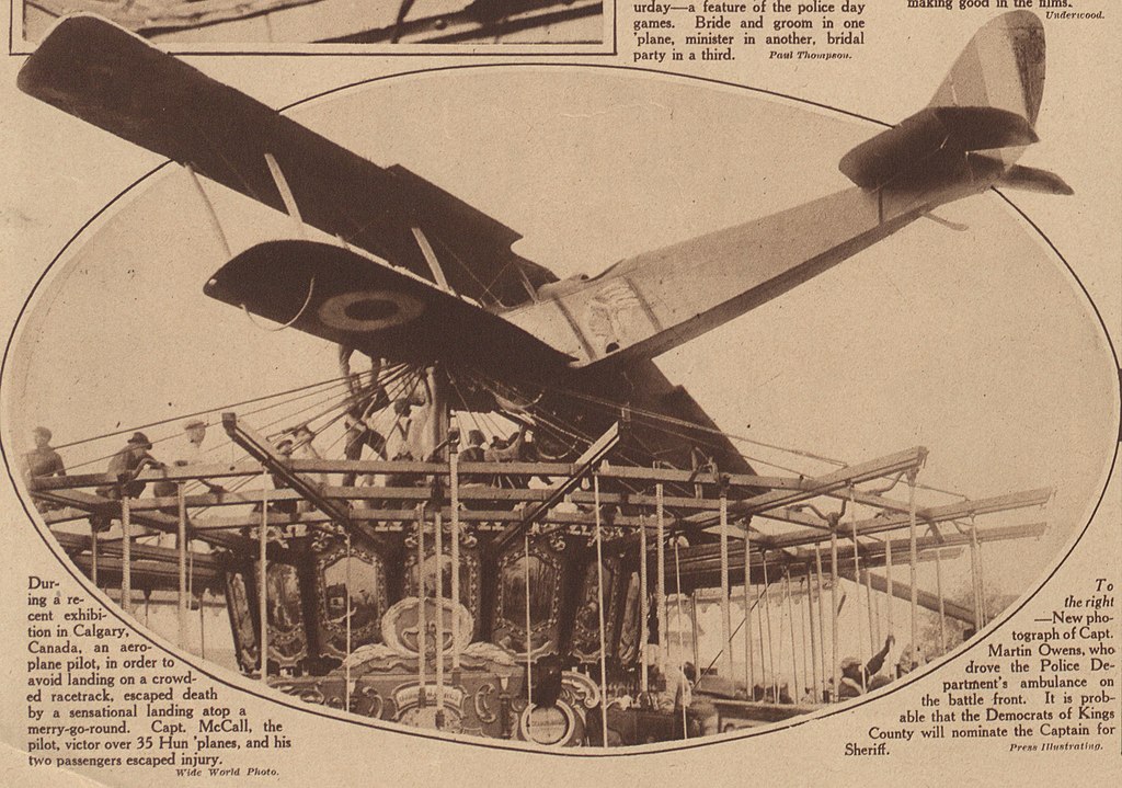 Logan, Shawn. “That Time a First World War Flying Ace Crash Landed on a Calgary …” Calgary Herald, 2 July 2019, https://calgaryherald.com/news/local-news/that-time-a-first-world-war-flying-ace-crash-landed-on-a-calgary-stampede-carousel/.