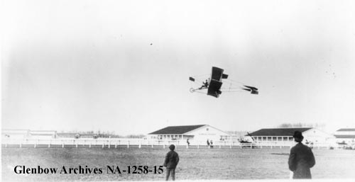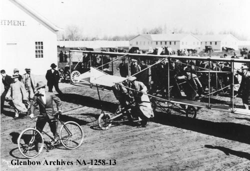 One of the first documented cases of aerial shows in Alberta happened in April 1911. Hugh Robinson and “Lucky Bob” St. Henry (famous American actors/pilots) were contracted to come to the Edmonton Exhibition to fly over the city. The demonstration was thrilling as most fair goers had never seen an aircraft before and they drew a considerable crowd. Not wanting to be outdone by their rival city, three months later Calgary invited pilot Howard LeVan to perform in their Summer Fair, which was held in the city’s Victoria Park. LeVan’s flights became especially notable in Alberta aviation history for two reasons: they were some of the very first performed in the city of Calgary and they were rife with catastrophe.