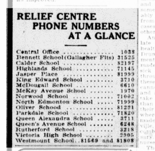 People in need throughout Edmonton could telephone the district headquarters closest to their home and ask for all sorts of help. The neighbourly help provided through McKay Avenue school was typical of all 15 districts: