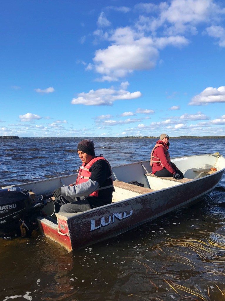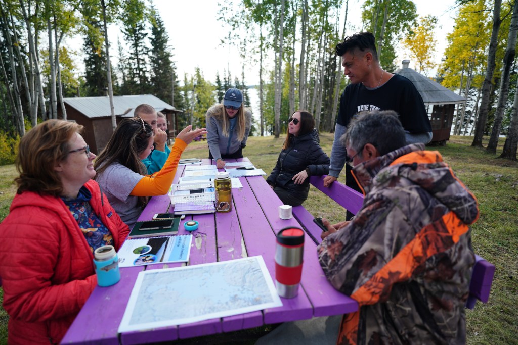 In the summer and fall months, Bistcho Lake is only accessible by air. Circling above the lake before landing at Tapawingo Lodge, we were struck by the beauty and remoteness of the landscape. The autumn greens, golds and blues were spectacular. But the lasting memories will be of the relationships formed, the stories shared and the time spent together on the land. Days were spent deploying wildlife monitoring cameras and audio units as part of the Dene Tha’ First Nation Guardians of the Territory program, conducting water quality sampling, visiting cultural heritage sites, hunting, fishing and storytelling. Evenings were spent by the fire, playing hand games and witnessing the northern lights across the lake to a soundtrack of howling wolves.
