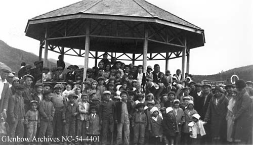 Editor’s note: The banner image above, awarding of a Dominion Day track trophy at the Blairmore Bandstand, is courtesy of the Crowsnest Museum and Archives.