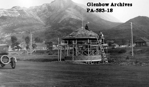 In 1911, a town band was organized in Blairmore and people began asking the town council to build a bandstand at a prominent place in the community. However, it took 10 years for the town to build one. In June 1921, local newspaper the Blairmore Enterprise, reported that the Blairmore town council had unanimously voted to invite tenders for the construction of a bandstand at Victoria Street (now 20 Avenue) and Sixth Avenue (now 130 Street), across from the Cosmopolitan Hotel. Once built, the bandstand quickly became a focal point in the community, being used for concerts, as the starting and finishing point for the running races and as a center of festivities for holidays and celebrations such as Dominion Day.