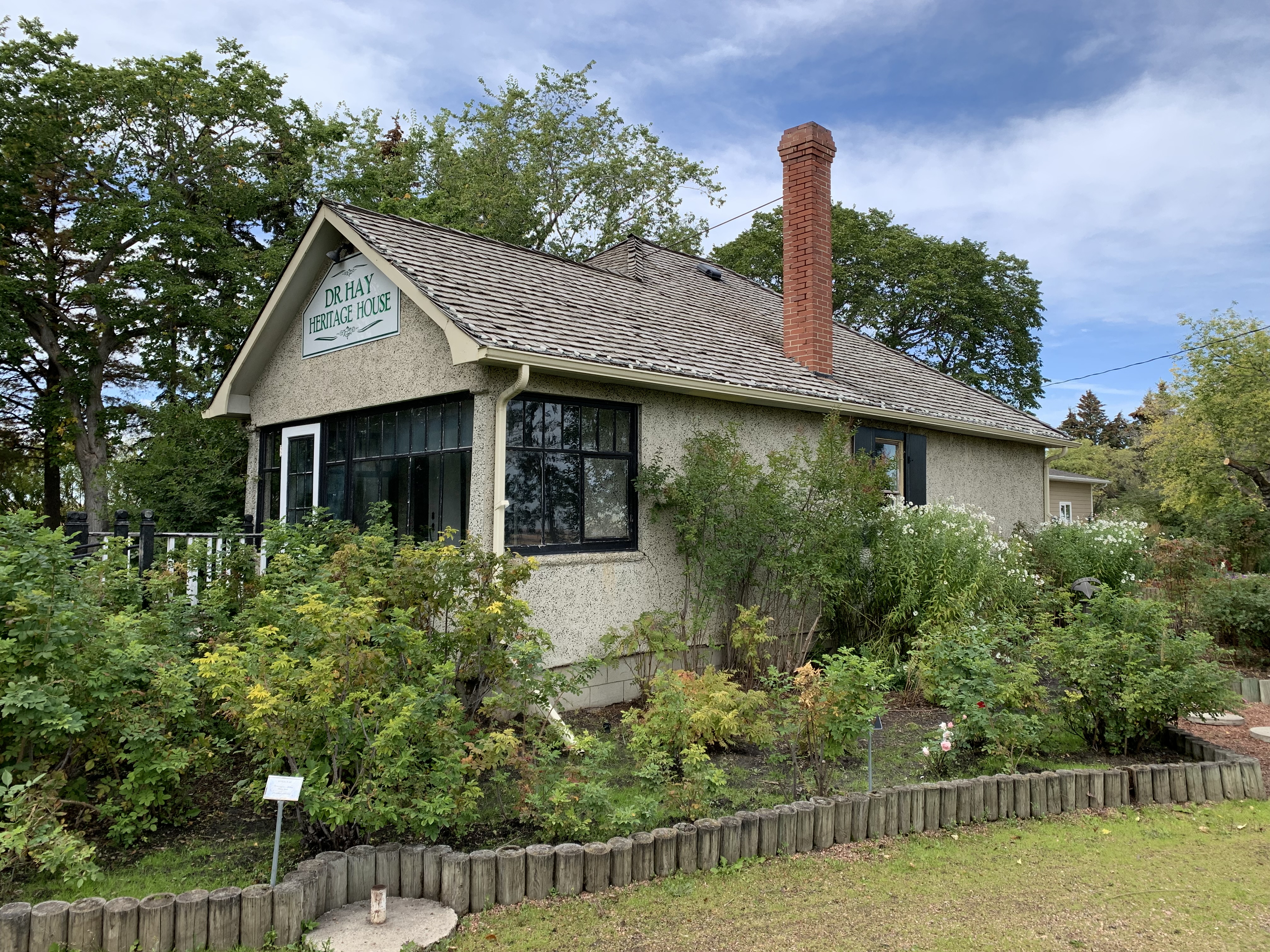 Located in the Trochu Arboretum and Gardens on the northern edge of the Town of Trochu, the Dr. Hay House is significant for its Craftsman design and its association with Dr. Andrew James Stewart Hay. The Craftsman style was an American residential design style that grew out of the English Arts and Crafts movement, which was a reaction to the Industrial Revolution and mass-production. Focusing on natural materials and hand-crafted elements, it was a fashionable style of home in Alberta during the 1910s and 1920s.