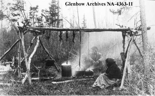 … I noticed several camping places that puzzled me—two uprights and a strong crossbar of wood from which were hanging a dozen or more pot hooks of wood blackened by smoke. I thought the Indians had been in some way curing fish but on enquiring at the Lake village I found that these were camping places used by the Indians in making a syrup from the birch tree—I was not aware before that the sap of the birch was treated in a manner similar to the maple.