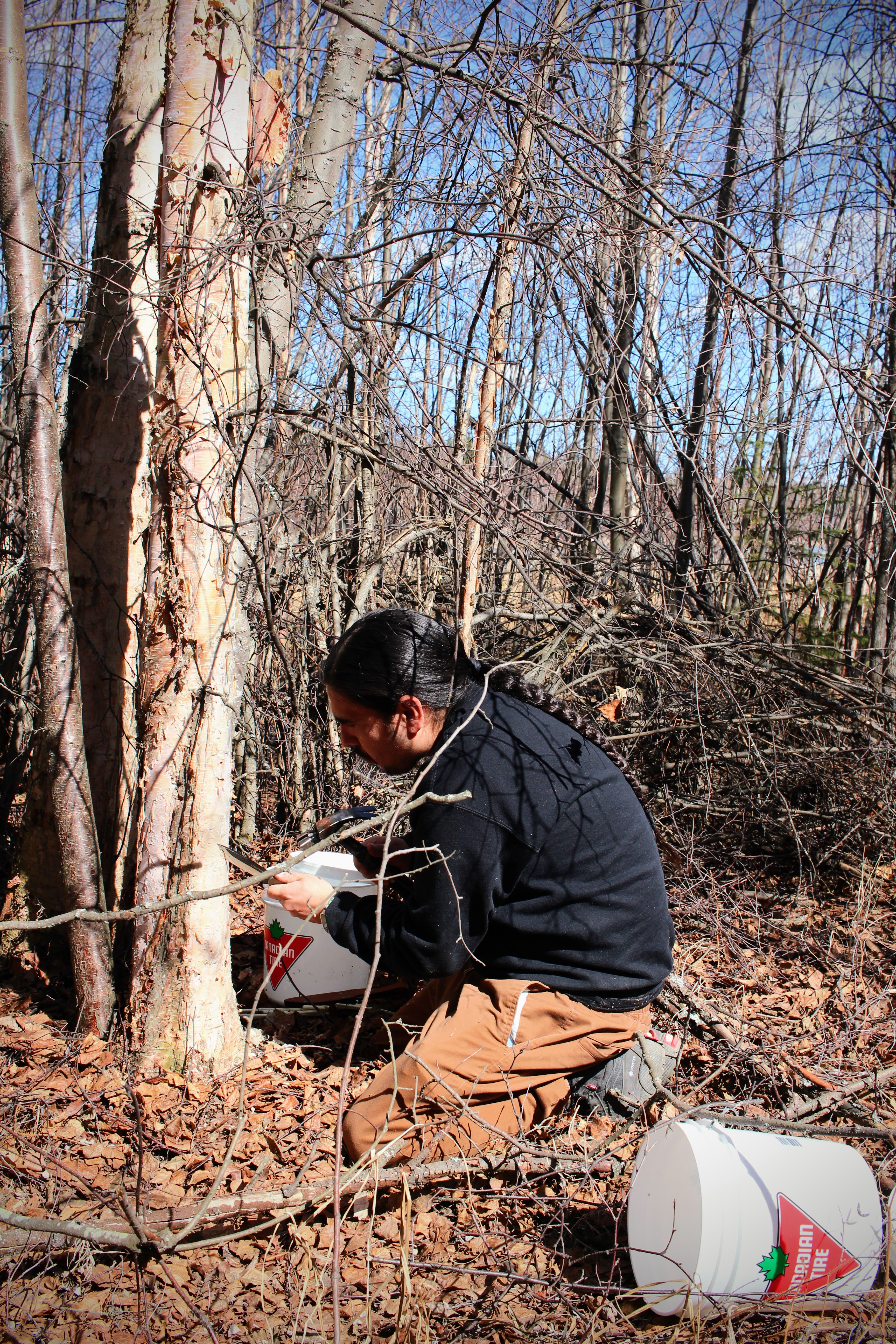 Nancy and Lawrence walk the forest with intention, looking for the best birch to tap. The trees that produce the most waskwayâpoy are often located in sunny spots; the sap runs faster during the day and slows significantly in the evening and overnight.