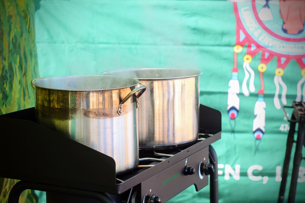 It’s a time-consuming, monotonous labour of love, but spirits are high and the company is good. Elders, Leadership and community members visit throughout the day, asking questions or sharing their own experiences birch tapping. In the late afternoon on Tuesday, a van brings the Nation’s youth to the lake. For several, this is their first exposure to the practice. Lawrence reflected: “It was awesome to hear stories of how Elders used to see their parents or kôkums harvest syrup and to see the kids learn and try for the first time, it was priceless.”
