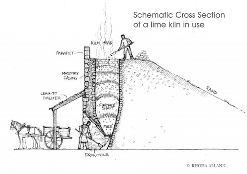 About 50 km upriver on the Slave River from Fitzgerald, Alberta, among a small cluster of islands named Stony Islands, you will find the remains of a stone lime kiln. Archaeologist Marc Stevenson documented the kiln (IjOu-5) and a nearby quarry (IjOu-6) during a survey of the Slave River in 1980. He described the kiln as a, “large semicircular limestone feature 4m in height.” The quarry is an exposed face of limestone just upriver from the kiln. All that we know about the history of the kiln is based on notes from a conversation Stevenson had with a Brother Seaurault. According to Stevenson, “The feature, according to an elderly informant, is the limestone furnace used by residents of Fort Chipewyan in the 1910’s and 1920’s to make whitewash for their log homes in the latter settlement.” It appears, therefore, to have been here for at least a century and is now showing the degradations of time, seasonal flooding and ice scouring.