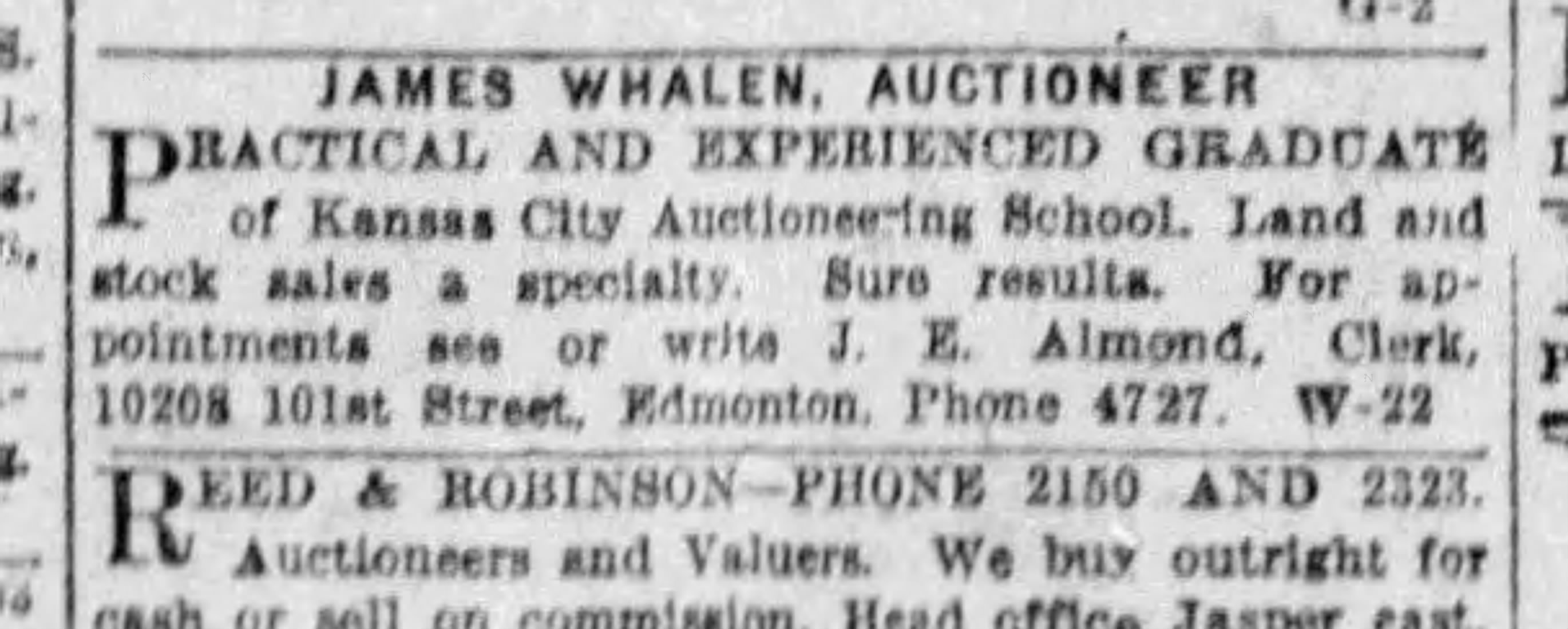 In March 1918, it was advertised that J.E. Almond was a clerk for James Whalen, auctioneer.