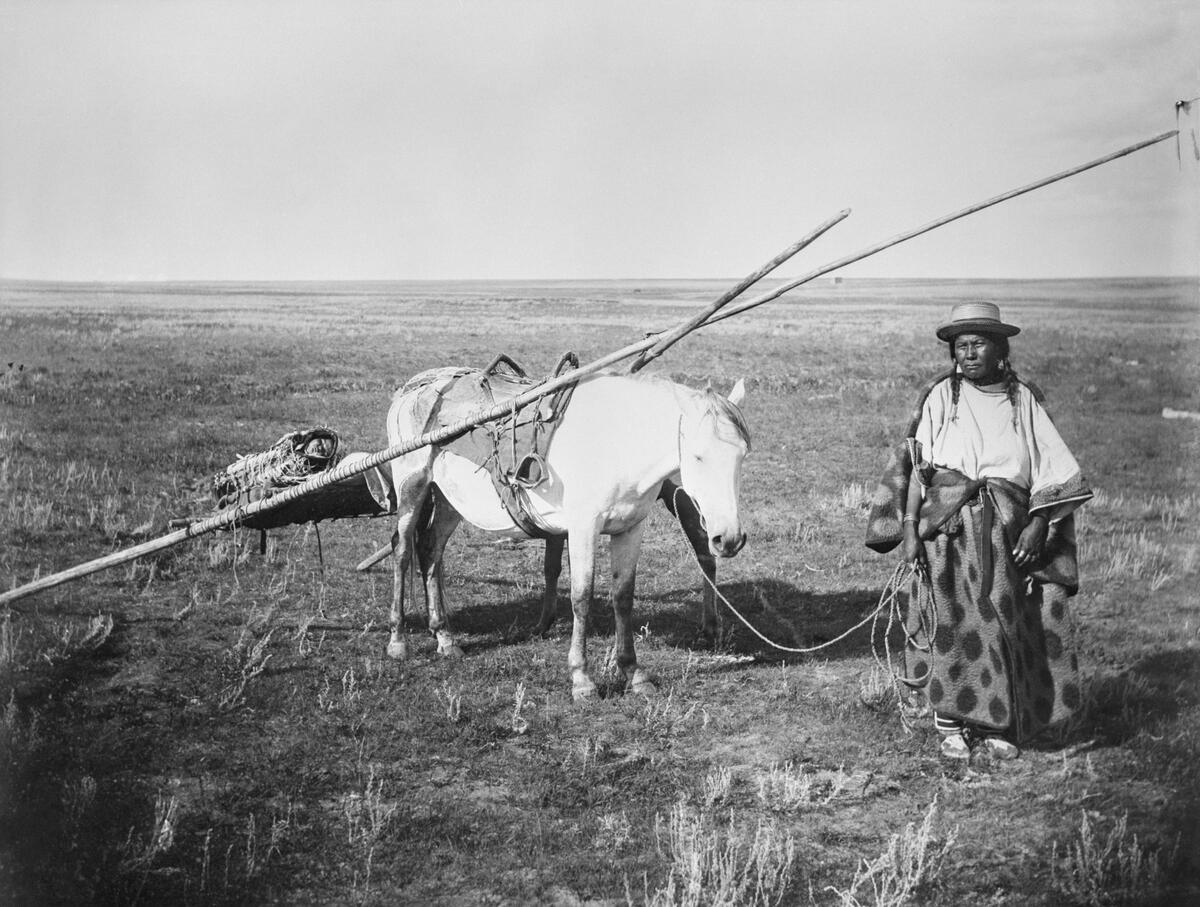 The travois poles will be held up… they lean branches of leaves to make shade…They use pine needles to cool their heads. They just spray their heads with pine needles.