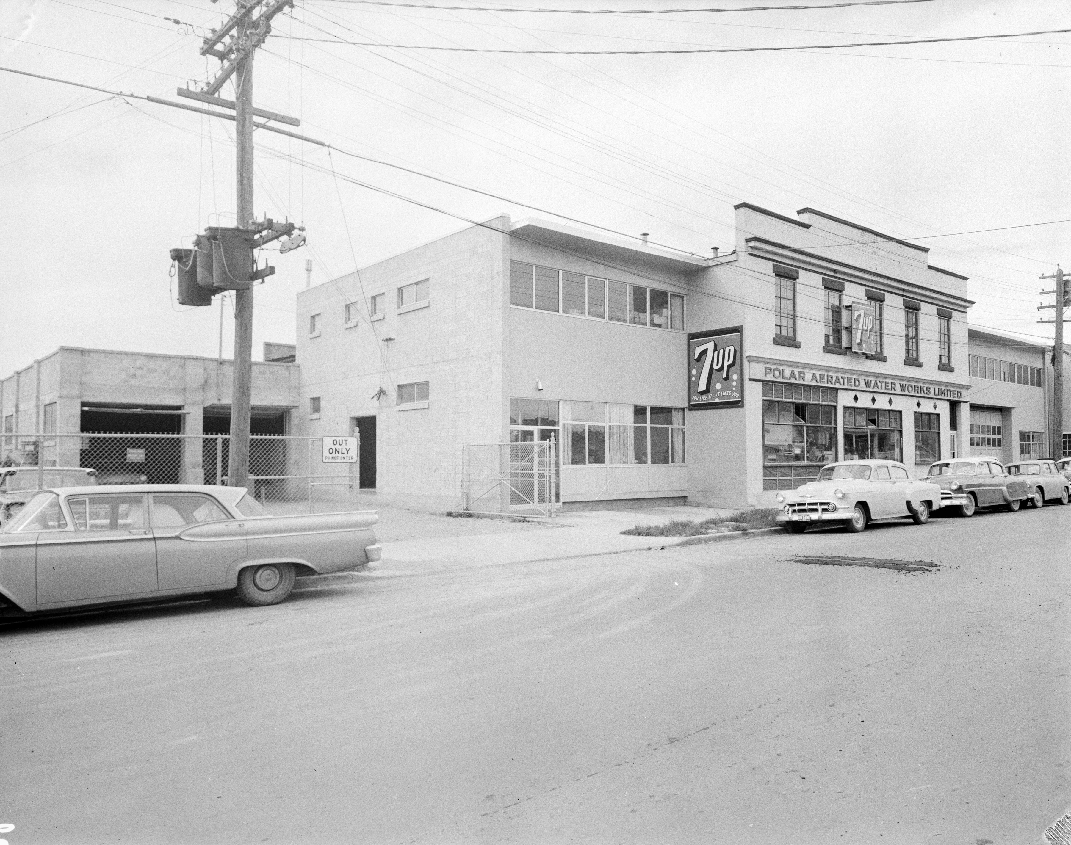 The public’s interest in consuming soda continued into the late 20s and demand for Polar’s products was sufficient to necessitate construction of a larger factory in 1929 at 129 3 Avenue East. This larger space enabled the Pearlmans to continue following the general trends in soft drink manufacturing. This included bottling an increasing number of national brand franchise products, including two major brands they added during the 1930s: 7-Up in 1935 and Orange Crush in 1939. Polar was one of the first companies in Canada to secure a franchise to bottle 7-Up, and the brand quickly became a top seller for the company. By 1953, 7-Up sales accounted for nearly 47 per cent of the company’s bottled pop sales; by 1966, that figure had increased to over 68 per cent of the nearly 376,000 bottles and cans produced by Polar. Initially, these national brands complemented Polar’s own flavour lines, which still accounted for 30 per cent of the bottles produced by the company in 1953. However, sales of Polar’s own flavours dropped dramatically through the decade and Polar ceased producing its own flavour lines in 1961.
