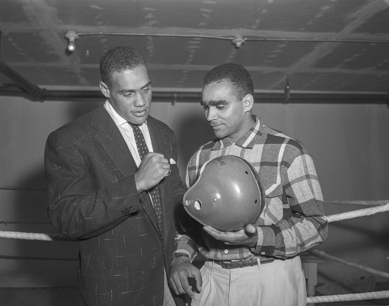 Among the famous individuals found in the PAA’s holdings is John Dee (Johnny) Bright. Born in Indiana in 1930, he attended Drake University on a track and field scholarship, which led to a remarkable collegiate football career marked by several National Collegiate Athletic Association (NCAA) records as well as a national profile. His senior year in 1951 was also notable when he was the target of a racially motivated assault on the playing field during a game with Oklahoma A&M University (now Oklahoma State University), an incident documented in a Pulitzer Prize winning series of photographs. While some on-field rules changed because of the incident, the opposing team and its university administration denied any wrongdoing for decades and only apologized for the incident in 2005.