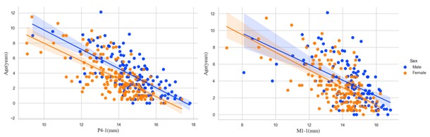Such conditions could vary even between contemporary households but also as changes in the human food environment shifted due to season, climate, and numerous other factors. In short, we should expect the complexities of dog diets in the past to create more variable relationships between tooth crown heights and age than observed in our modern wolf populations. Finally, changes in selection that emerge through domestication also may affect tooth wear patterns in dogs. A decrease in body size over time, a common pattern observed in mammal domestication, should reduce sexual size dimorphism (Rensch’s rule). In at least modern dogs, sexual size dimorphism has been found to generally decrease with decreases in body size. If the same patterning existed in past dogs, the minor sex-based differences in tooth size observed in our modern wolves would be reduced. Further, in ideal settings, average life expectancy in domestic dogs could be significantly higher than in wild wolves. Human care and provisioning could allow dogs to survive beyond the point at which their dentition remained functional.