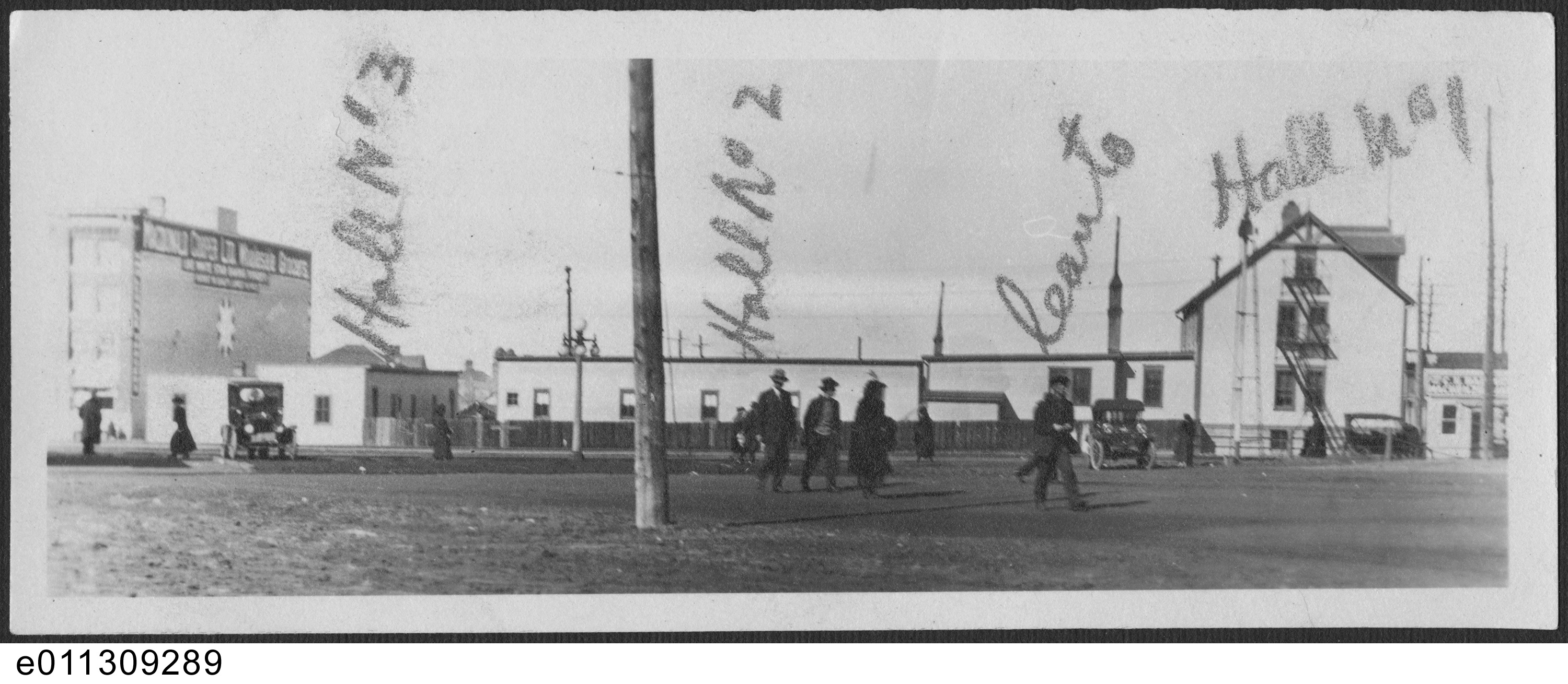 The first immigration hall there was erected the following year, just north of the terminus. Modeled on Regina’s first hall—designed by Canada’s Department of Public Works (DPW) and built two years earlier—this wood-frame Strathcona building had a single storey, two rooms sharing a wood stove, a kitchen bump-out at the back and an ell with rooms for luggage storage and a resident caretaker. A veranda stretched across the front of the building, with entrances at either end. As the government was concerned with sex segregation on the frontier, the two rooms of this small building did not have an interior connection.