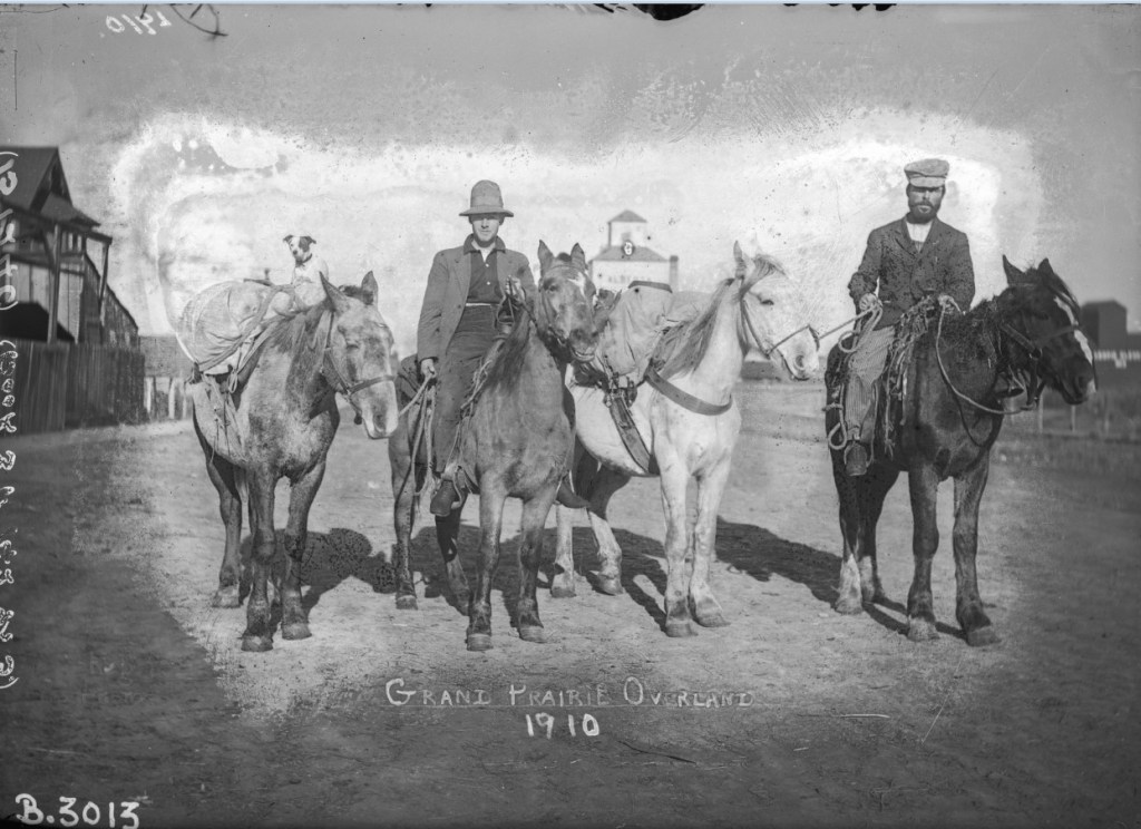On a more practical note, teams from the Dominion Lands Survey were sent to bring the Peace River Country into the same grid system that was in place for the rest of western Canada. Historian David Leonard describes the survey work as a “Herculean undertaking” as surveyors had to travel with heavy equipment over unforgiving terrain and heavy bush (Leonard 2005, p. 79). By 1912, a significant portion of the region’s arable land had been surveyed into quarter-sections and made ready for homestead claims. Most critically, the Edmonton, Dunvegan and British Columbia Railway was chartered in 1907, raising confidence that a railway to the region would finally be built. Construction on the railway that linked the Peace River Country to Edmonton finally began in 1912, thus securing the access to markets that was essential to making large-scale agricultural settlement viable.