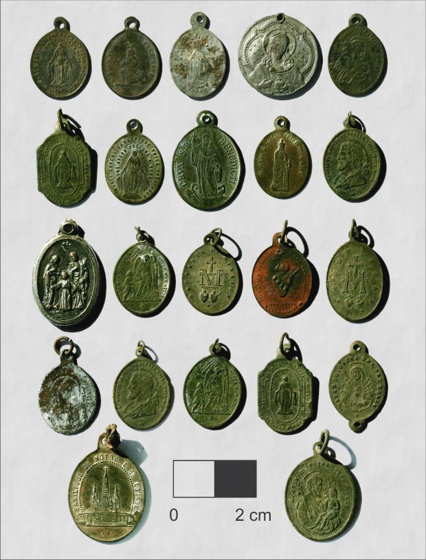 Roman Catholic medallions from the 1800s found in northwest Alberta. The medallions are symbols of a time when Christianity was spreading among First Nations communities.