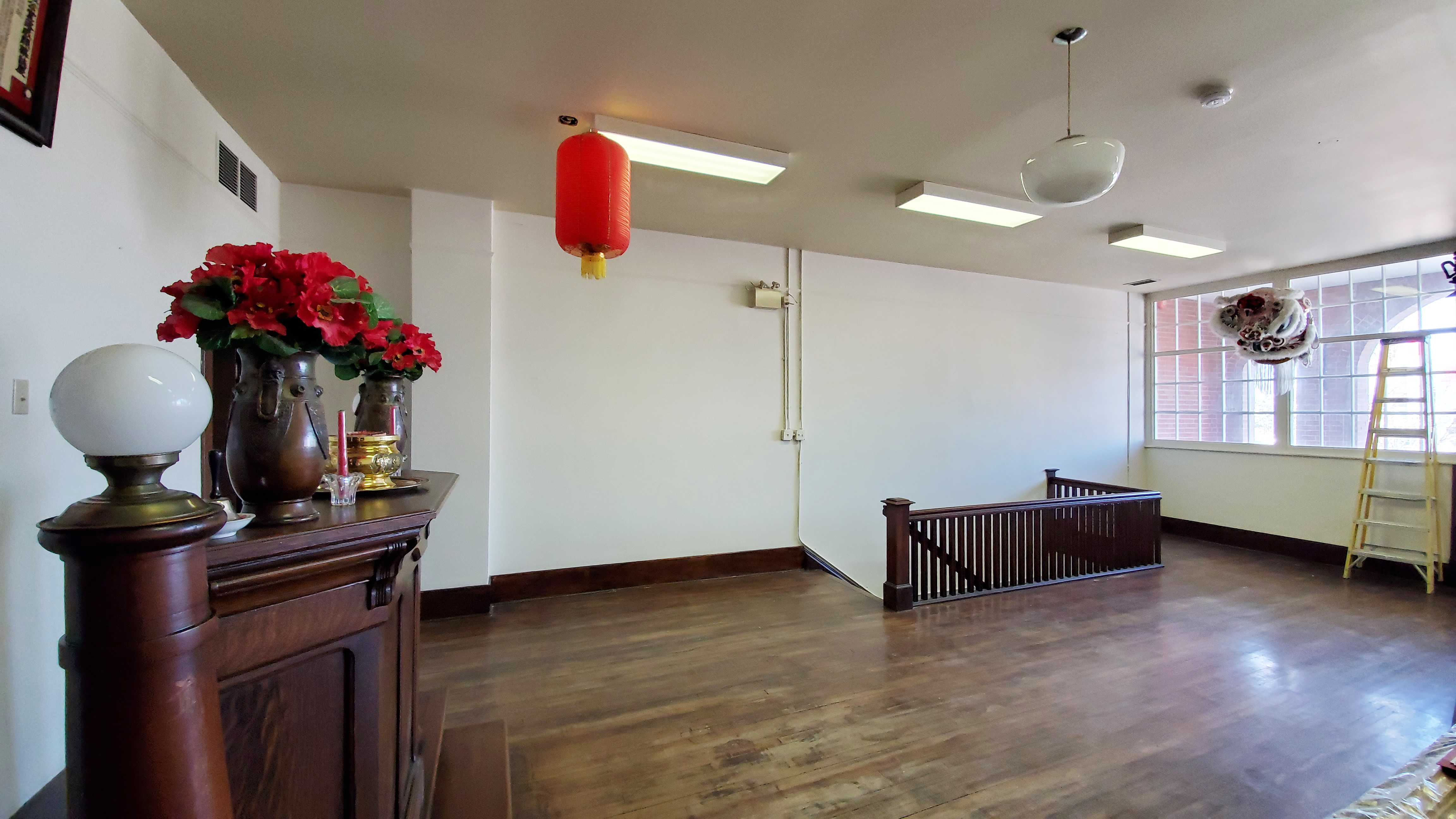 Second floor (Masonic hall) with far wall after plaster repairs and application of clay paint, March 2021. Source: Historic Resources Management Branch.